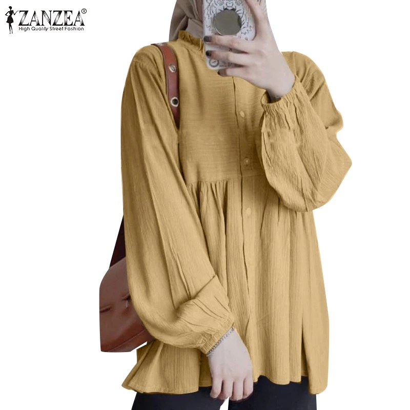 ZANZEA Women Korean Daily Retro Loose Cuff Rubber Long Sleeve Blouse Offer End: 29 Feb 2024 100% Authentic Gurantee