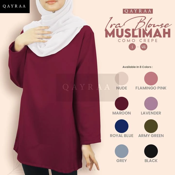 ๐๐๐ฒ๐ซ๐๐ Como Crepe Muslimah ๐๐ซ๐ ๐๐ฅ๐จ๐ฎ๐ฌ๐ / S-4XL Plus Size Blouse / Ironless Blouse / Women Muslim Wear Offer End: 12 Feb 2024 100% Authentic Guarantee