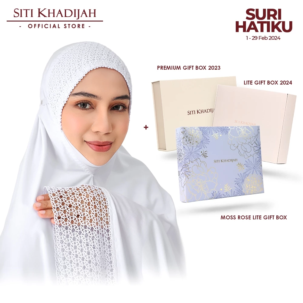 [Suri Hatiku] Siti Khadijah Modish Mehtap in White + SK Gift Box Offer End: 29 Feb 2024 100% Authentic Guarantee