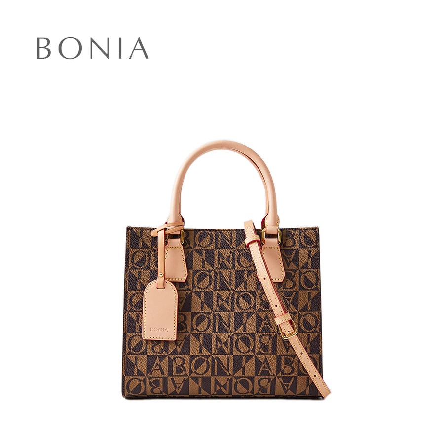 Bonia Beige Veronica Monogram Small Satchel Bag